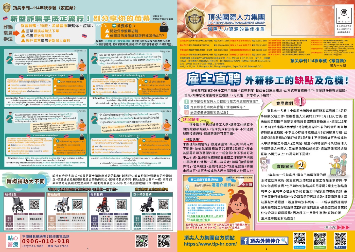 ◎ 雇主直聘 外籍移工的缺點及危機 移工在台必須申辦文件之程序規定/罰則表列 ◎ 拚7月上路 擴大『多元免評對象』聘外籍看護 ◎ 長照3.0明年上路 推10分鐘照顧圈、離院服務零時差 ◎ 新型詐騙手法正流行!別分享你的螢幕