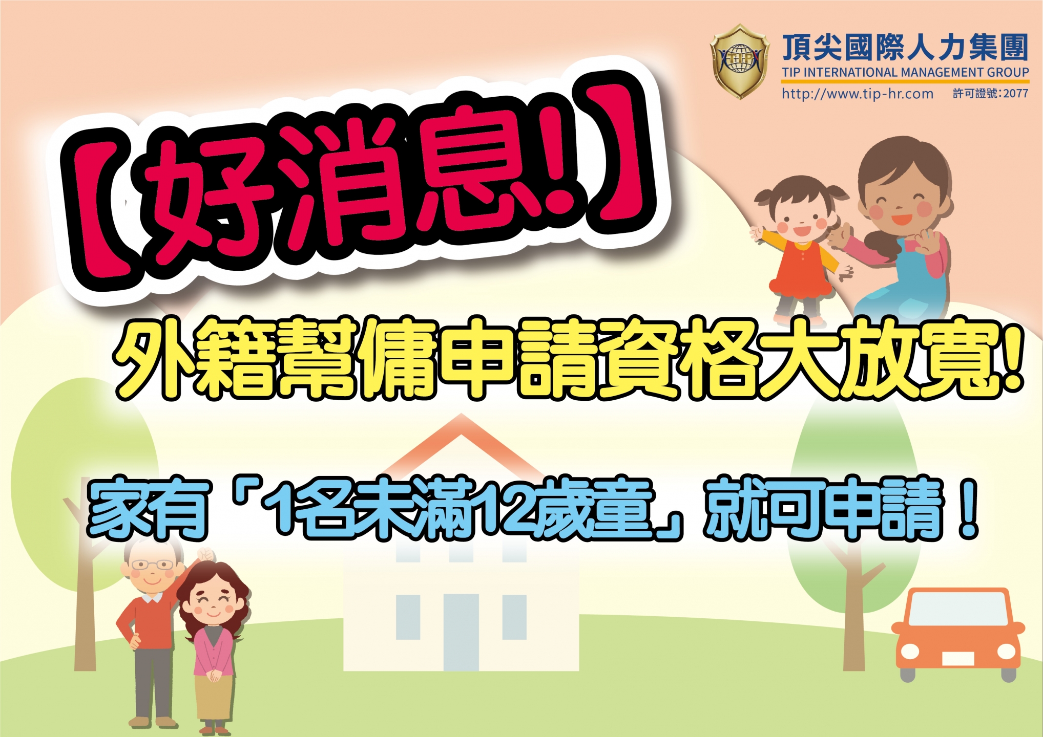 家有「1名未滿12歲童」就可申請外籍幫傭! 門檻大鬆綁,4/13開放申請,申請資格一次看
